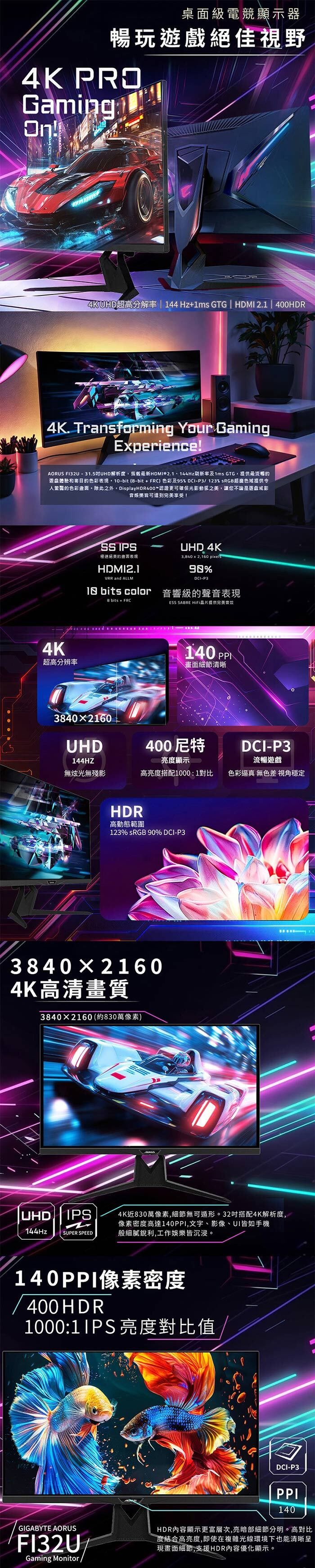 【甜檸檬認證XRefine】Gigabyte Aorus 技嘉 FI32U 32吋 電競螢幕 UHD/144Hz/4K|技嘉集團百事益9成新福利品