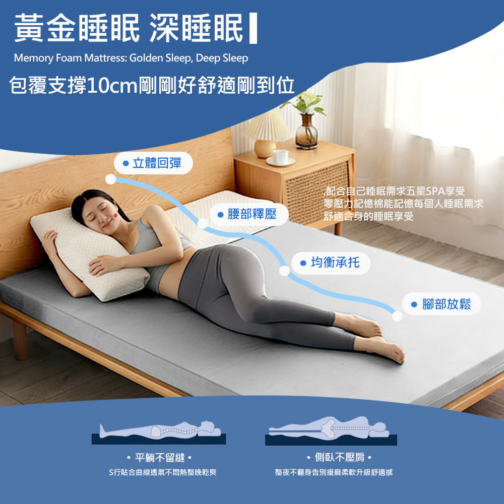 台灣製 3M防潑水抗菌防蹣 10cm記憶摺疊床墊-多款尺寸(贈專用收納袋)|Sleep Peacefully 寢室安居