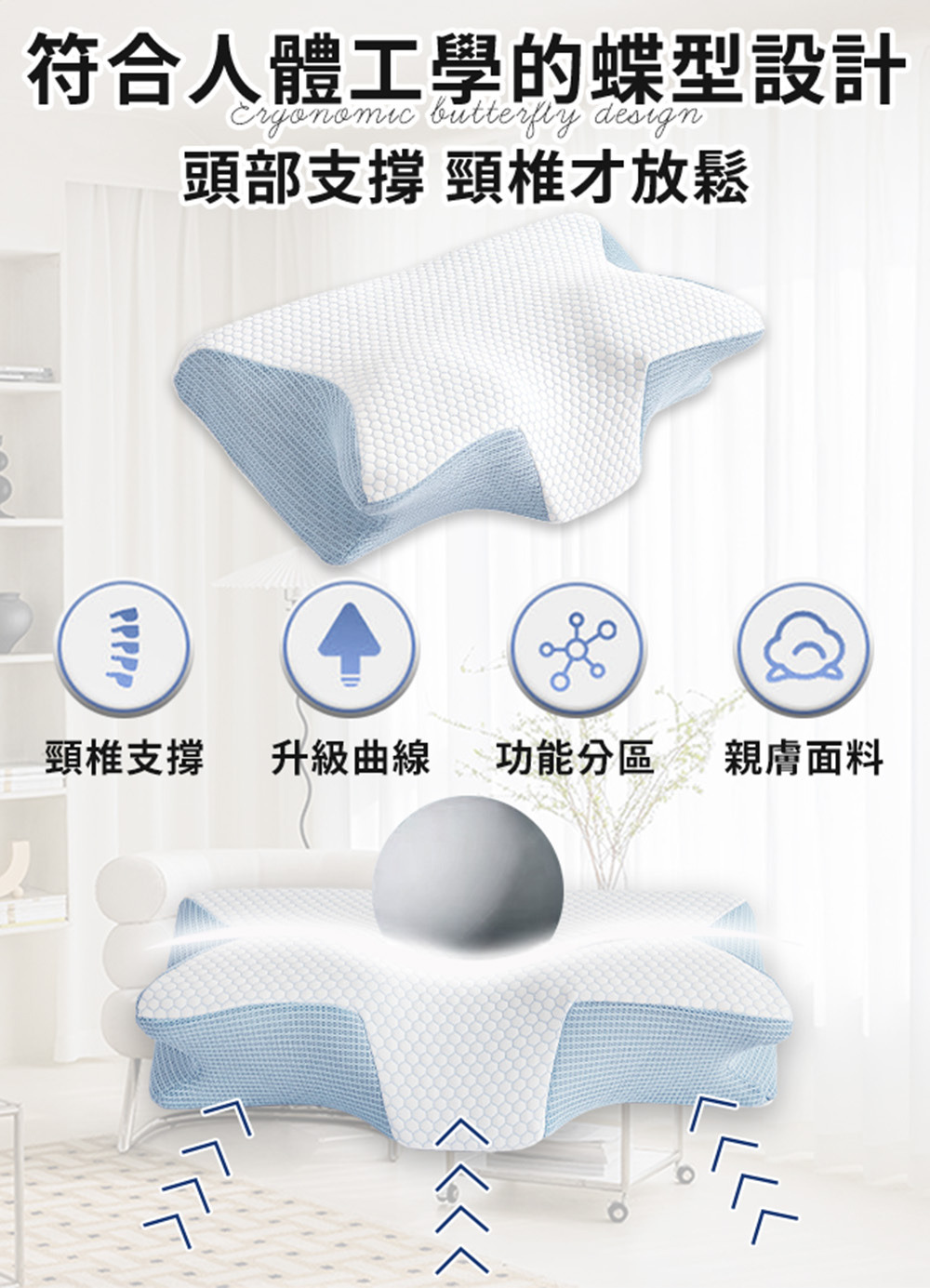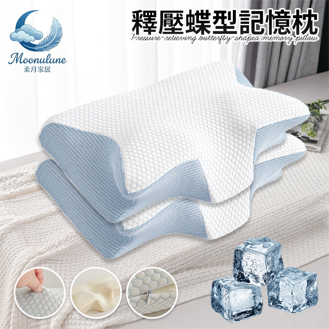 涼感透氣護頸釋壓蝶型人體工學記憶枕|Moonulune 柔月家居