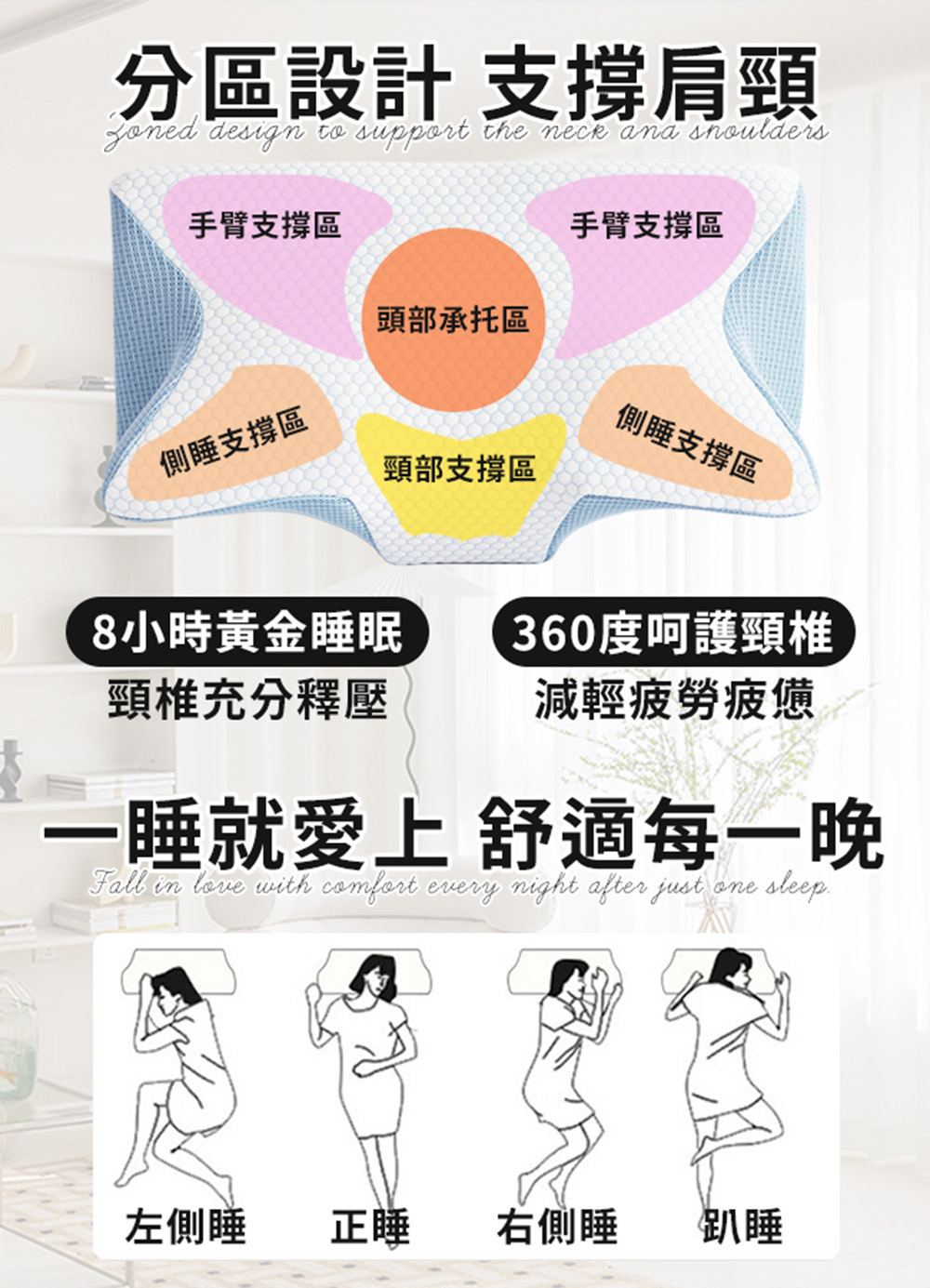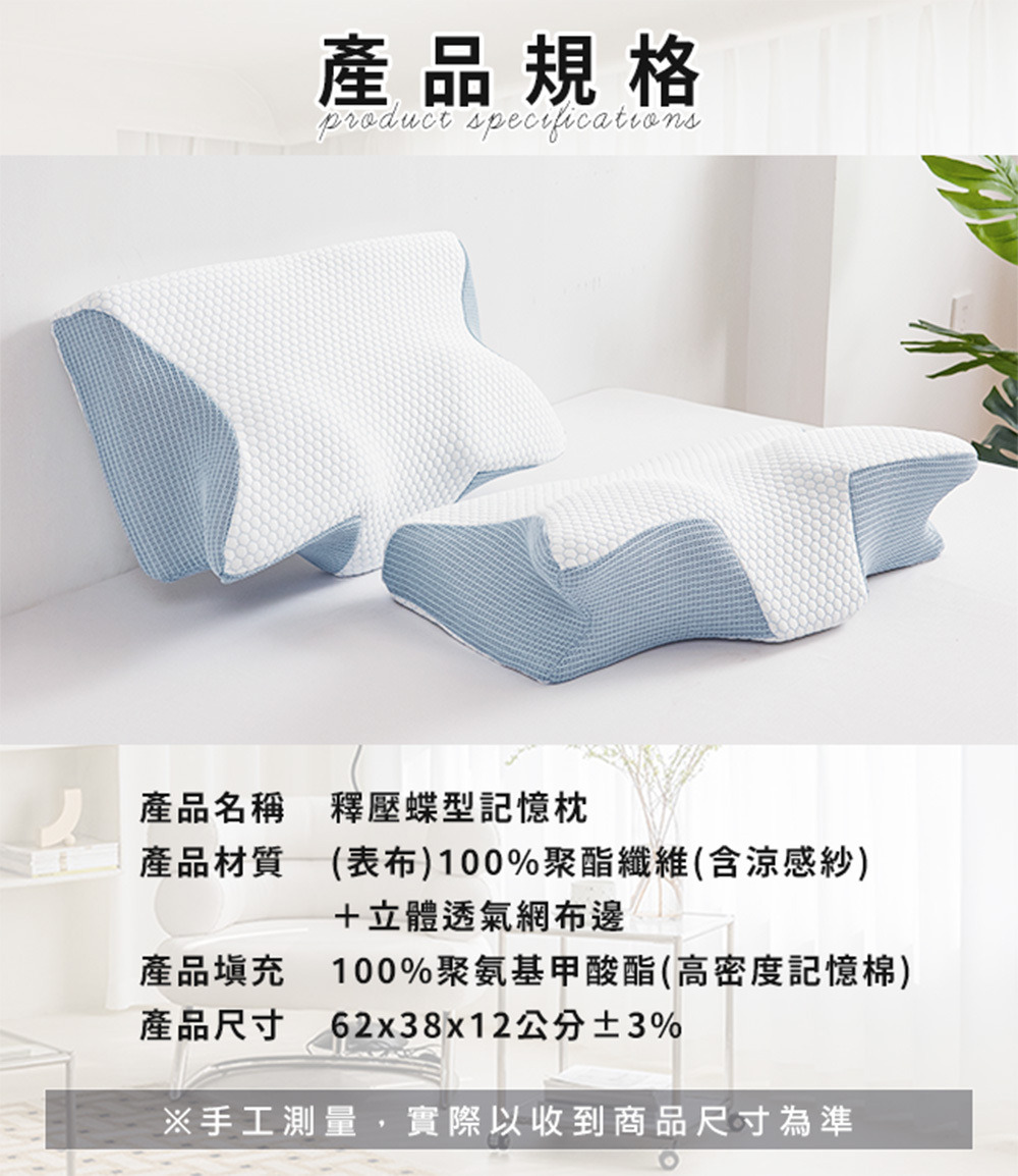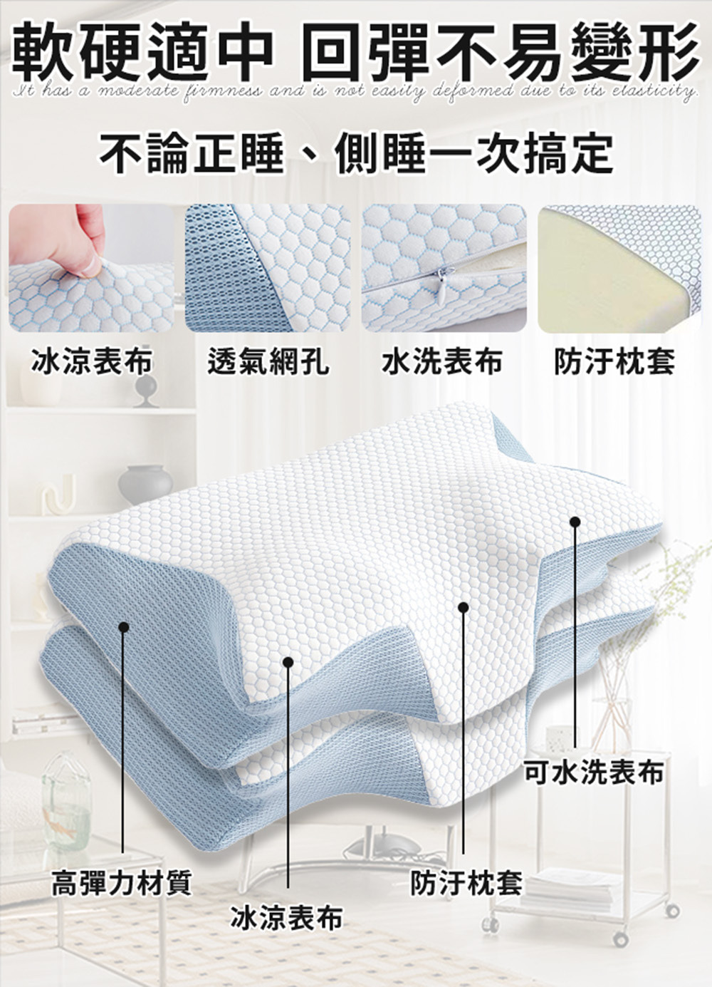 慢回彈服貼肩頸舒眠一晚,立體網眼透氣布邊親膚觸感