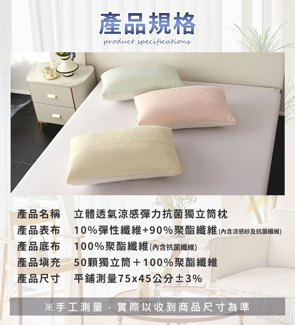產品名稱:立體透氣涼感彈力抗菌獨立筒枕