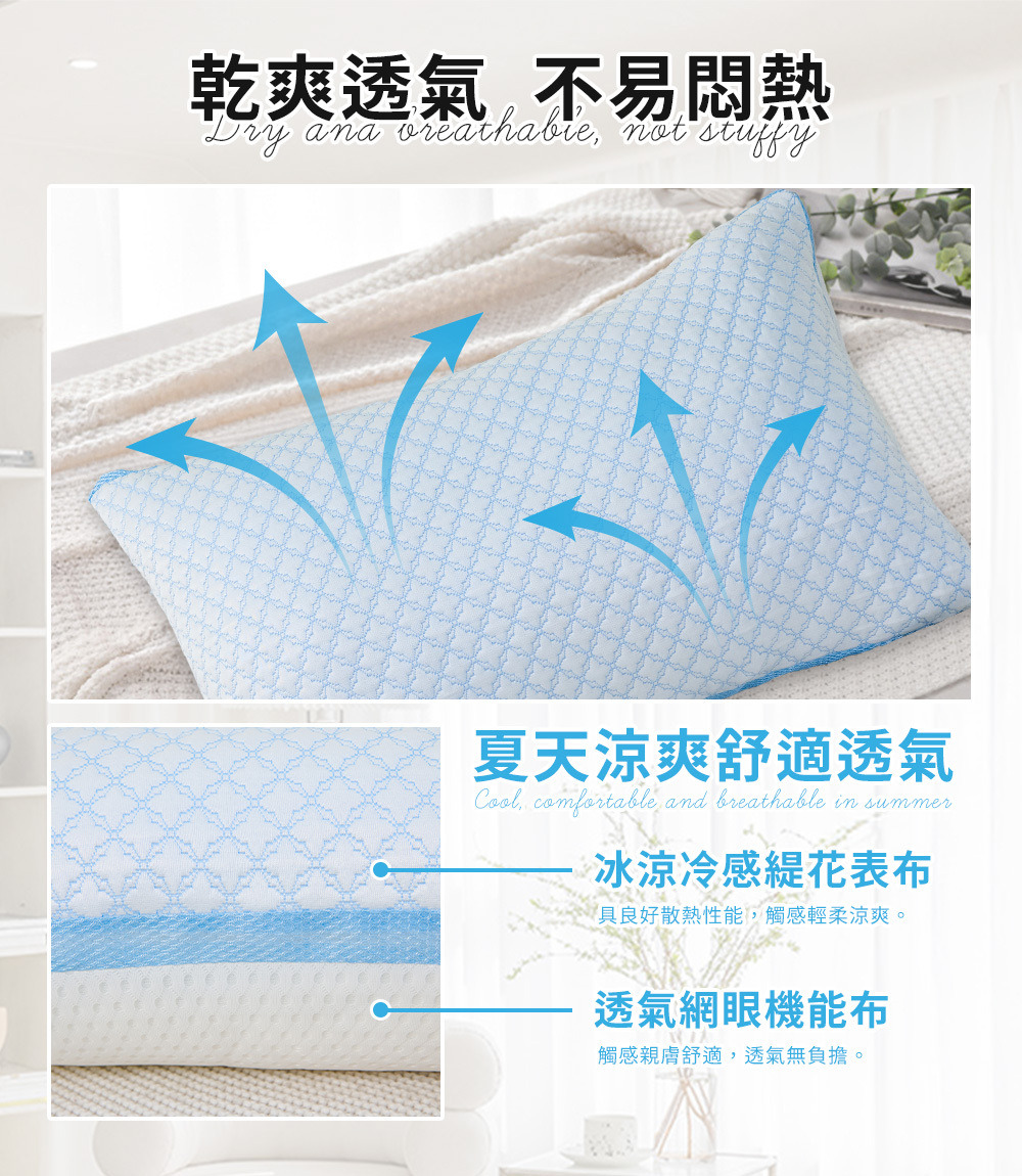 產品材質:100%聚酯纖維(含涼感紗)、(表布)含涼感紗舒柔緹花布、(底布)透氣網眼機能布